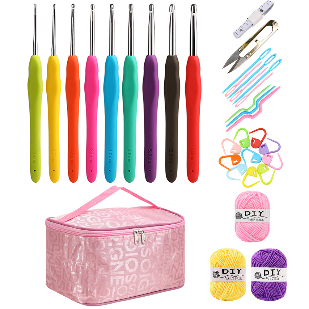 The Pouch are of three different colours which are Deep Pink, Baby Pink and Blue. The yarns are accessories can have different colours but all what is seen in the image are what you will get.